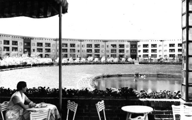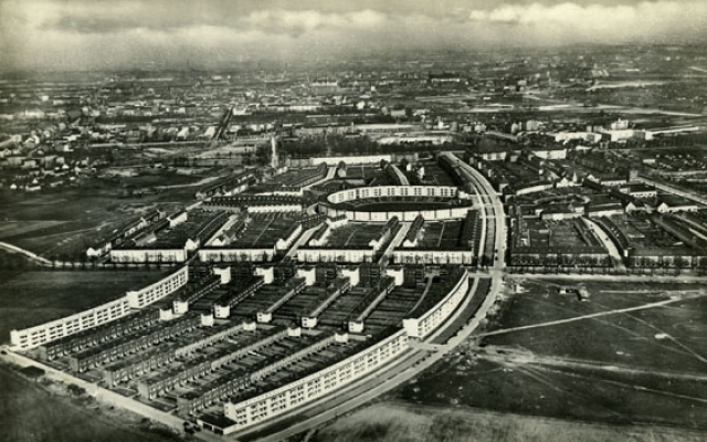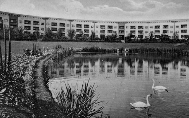 Als die Wohnungsnot in Berlin am größten war, beschloss der Senat 600 Hektar des ehemaligen Rittergutes Britz zu kaufen. Ab 1925 entstand auf dem Gelände die Großsiedlung Britz, bestehend aus der östlichen DEGEWO-Siedlung („Eierpfuhl“) und der westlichen GEHAG-Siedlung. Zentrum dieses Bauteils war ein markanter hufeisenförmiger Baublock um einen eiszeitlichen Pfuhl. Von diesem gehen mehrere Straßen mit kleinen farbigen Reihenhäusern radial ab.