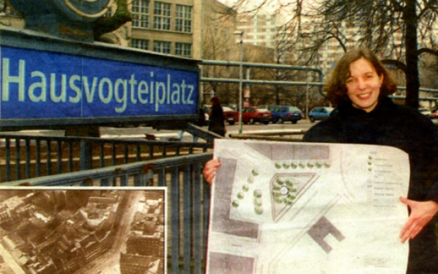 MITTE. – (…) Nicht nur der Monbijoupark wird geputzt: Mit Bäumen um einen plätschernden Brunnen, Bänken und Basaltstreifen im Pflaster wird der Hausvogteiplatz wieder eine Insel im Häusermeer. Noch im Frühjahr sollen Gartenarbeiter anrücken, damit im Herbst alles fertig ist.